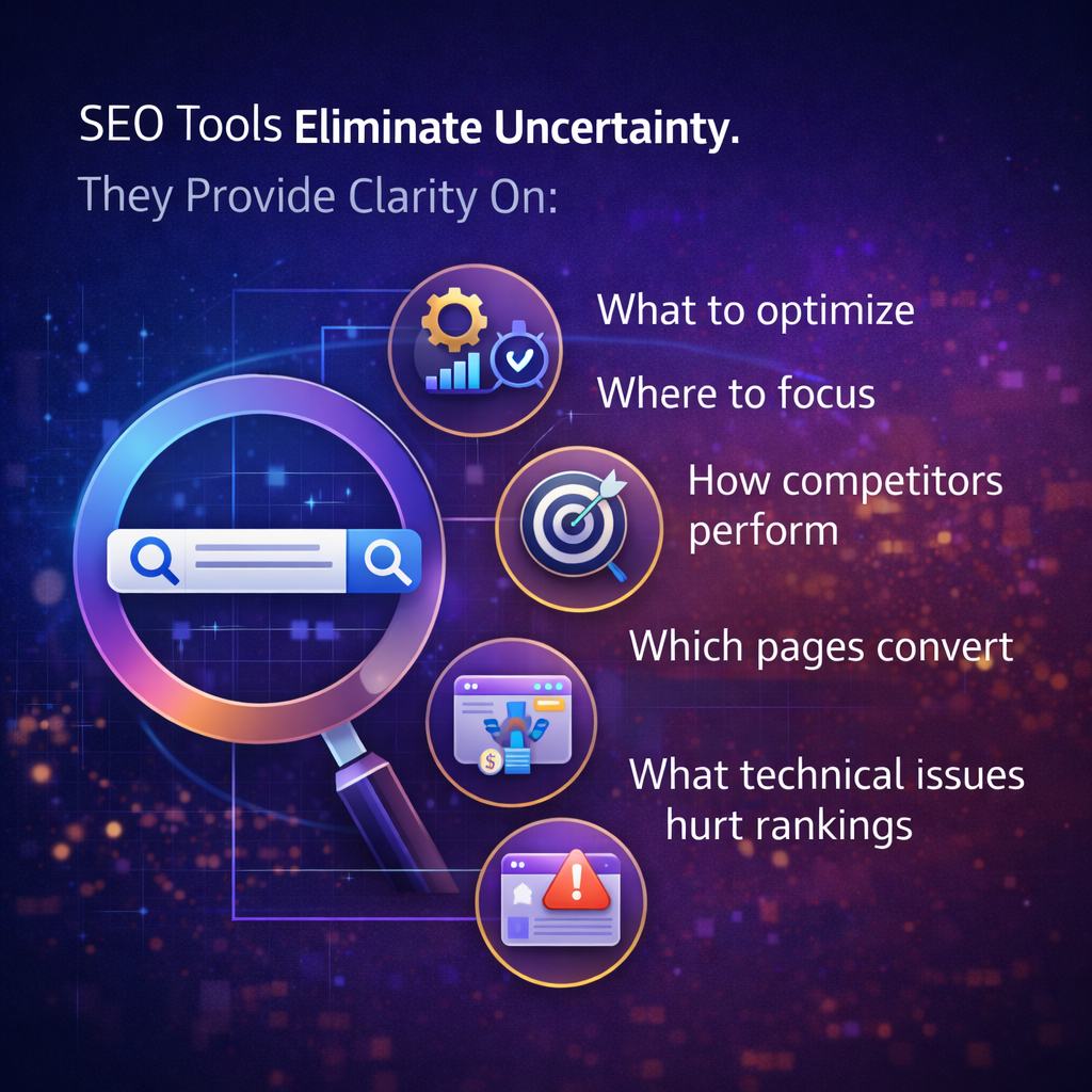 SEO tools eliminate uncertainty. They provide clarity on: